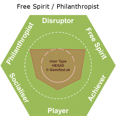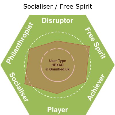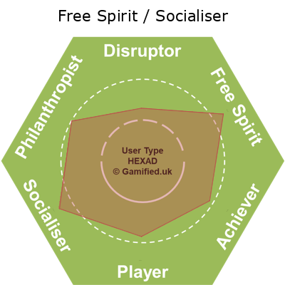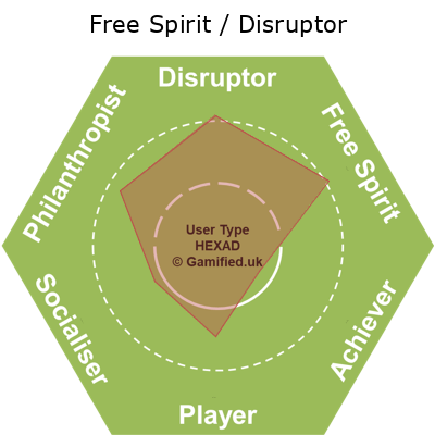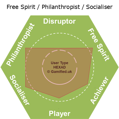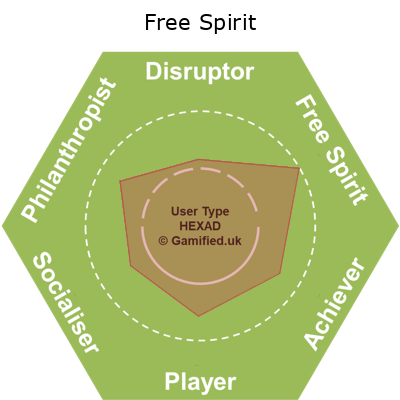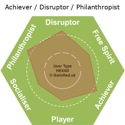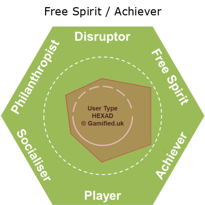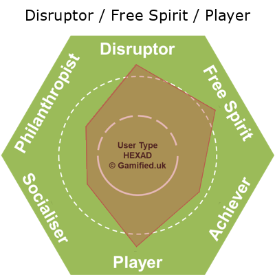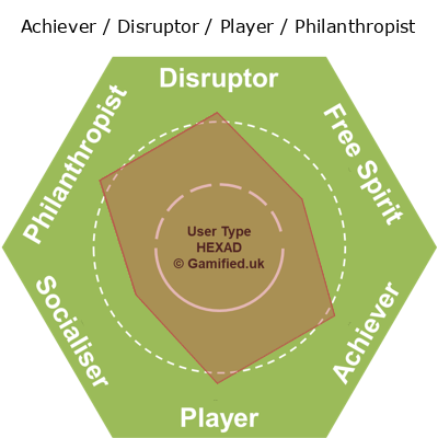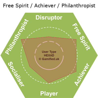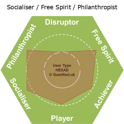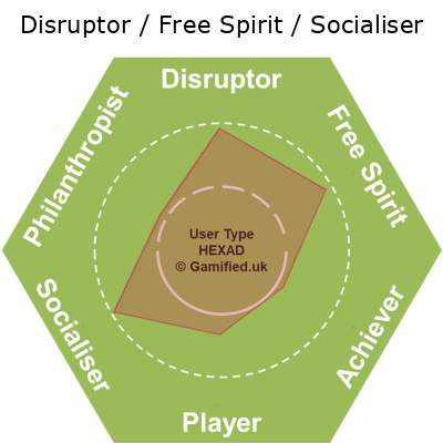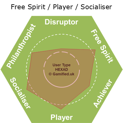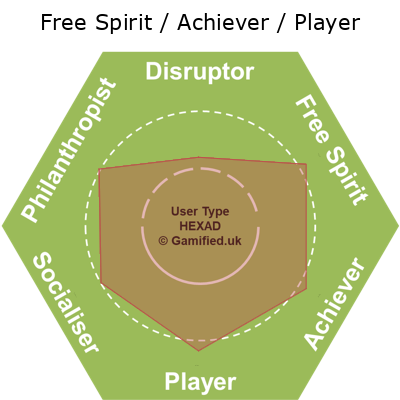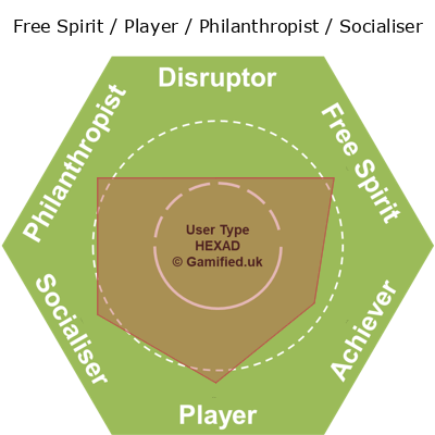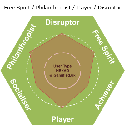 | Achiever / Disruptor / Free Spirit / Player / Socialiser | AFSP | 17% | 17% | 17% | 13% | 17% | 17% | Image |