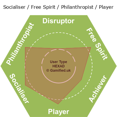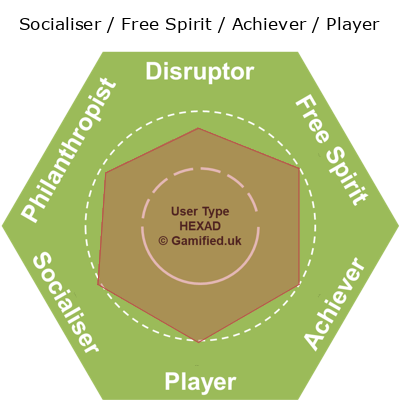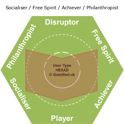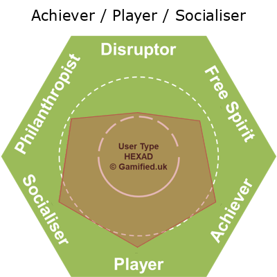 | Achiever / Player / Socialiser | ASFP | 20% | 16% | 20% | 16% | 20% | 10% | Image |