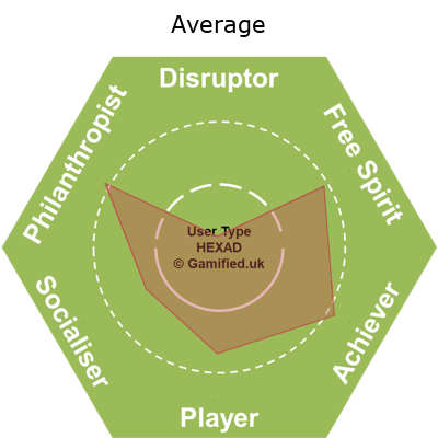 | AVG Type | Socialiser | Free Spirit | Achiever | Philanthropist | Player | Disruptor | Image |
