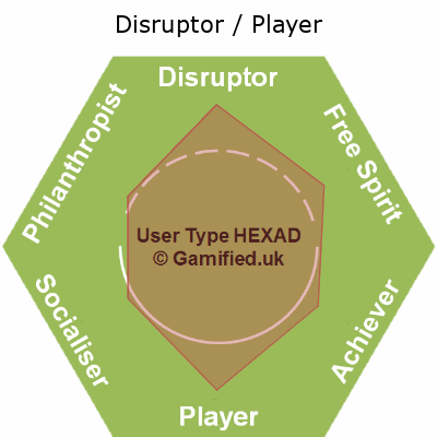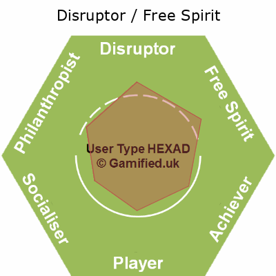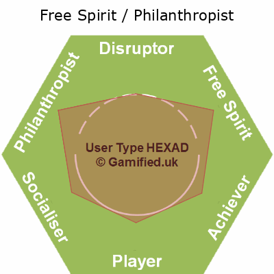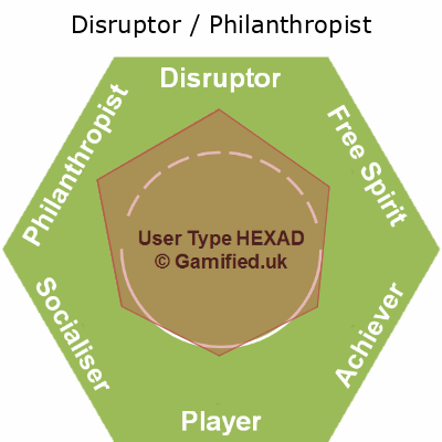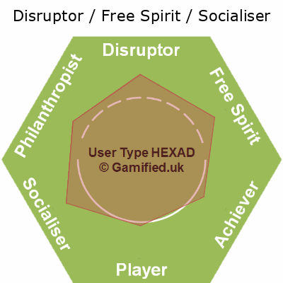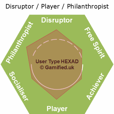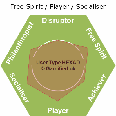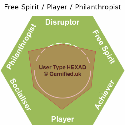 | Disruptor / Free Spirit / Player / Philanthropist / Socialiser | FPSA | 17% | 17% | 14% | 17% | 17% | 17% | Image |