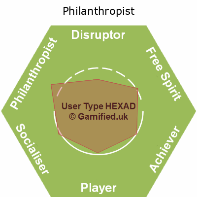 | Achiever / Disruptor / Player / Philanthropist / Socialiser | APSF | 17% | 15% | 17% | 17% | 17% | 17% | Image |